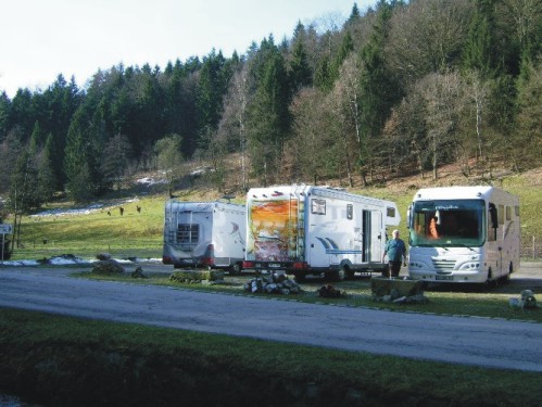 Stellplätze für Wohnmobile und Wohnwägen. Stellplatz kostet 10,00€ mit Dusche / Toiletten beheizt. Tag und Nacht benutzbar.